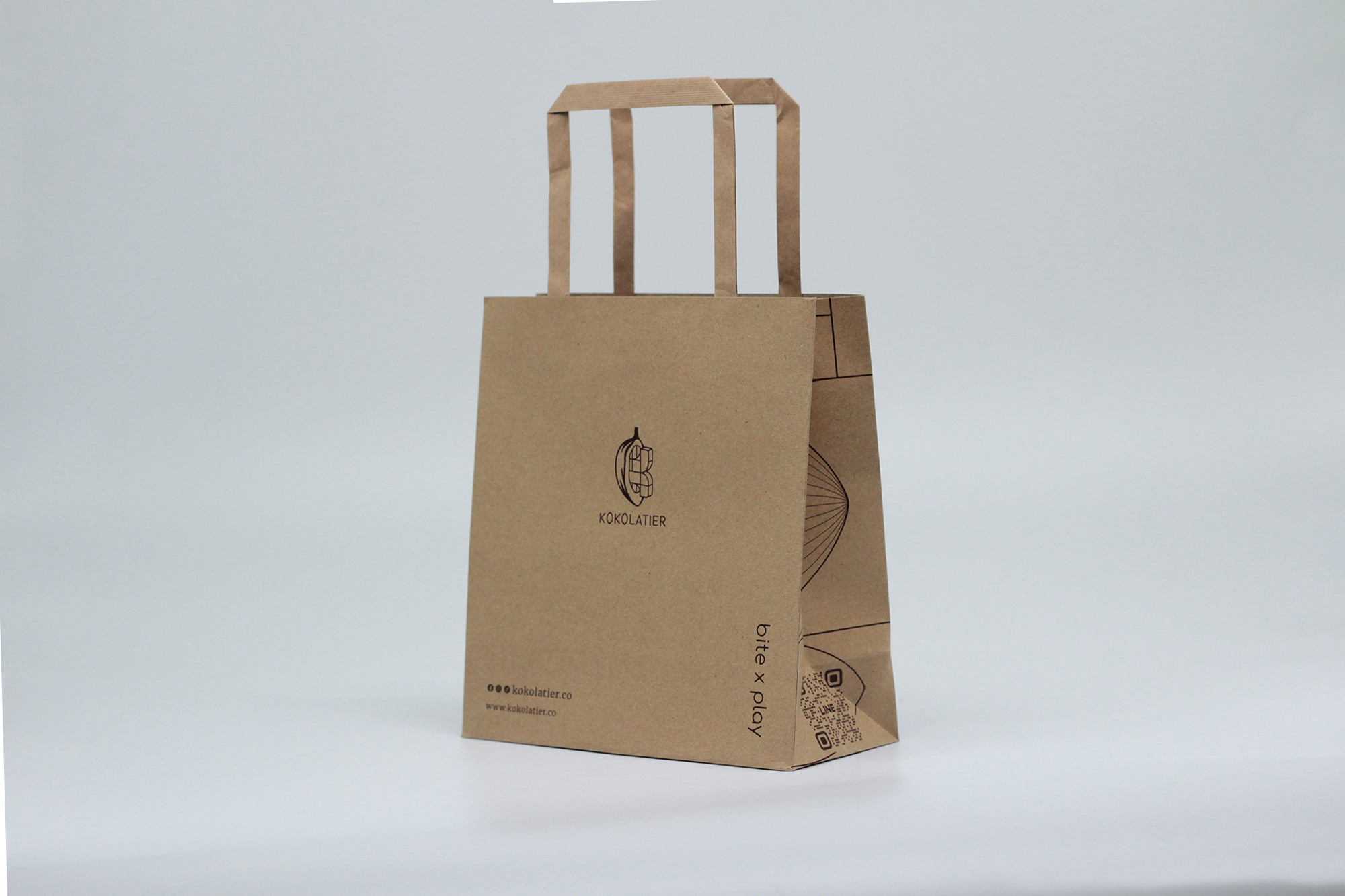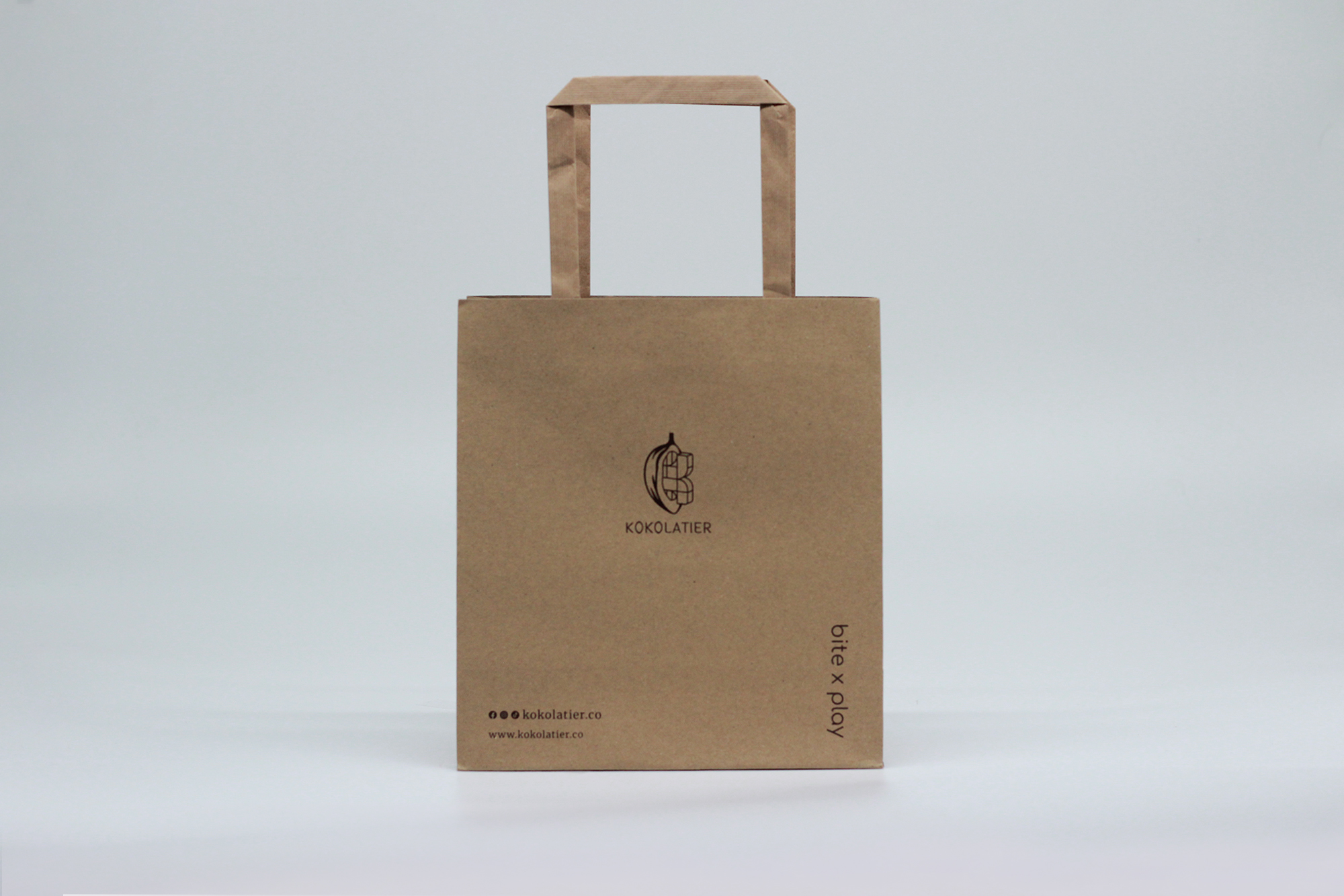 กระดาษคราฟท์ KT 125 แกรม พิมพ์ 1 สี/ไม่พิมพ์สีพื้น หูกระดาษ แบบแบนสีน้ำตาล มีกระดาษแข็งรองฐาน